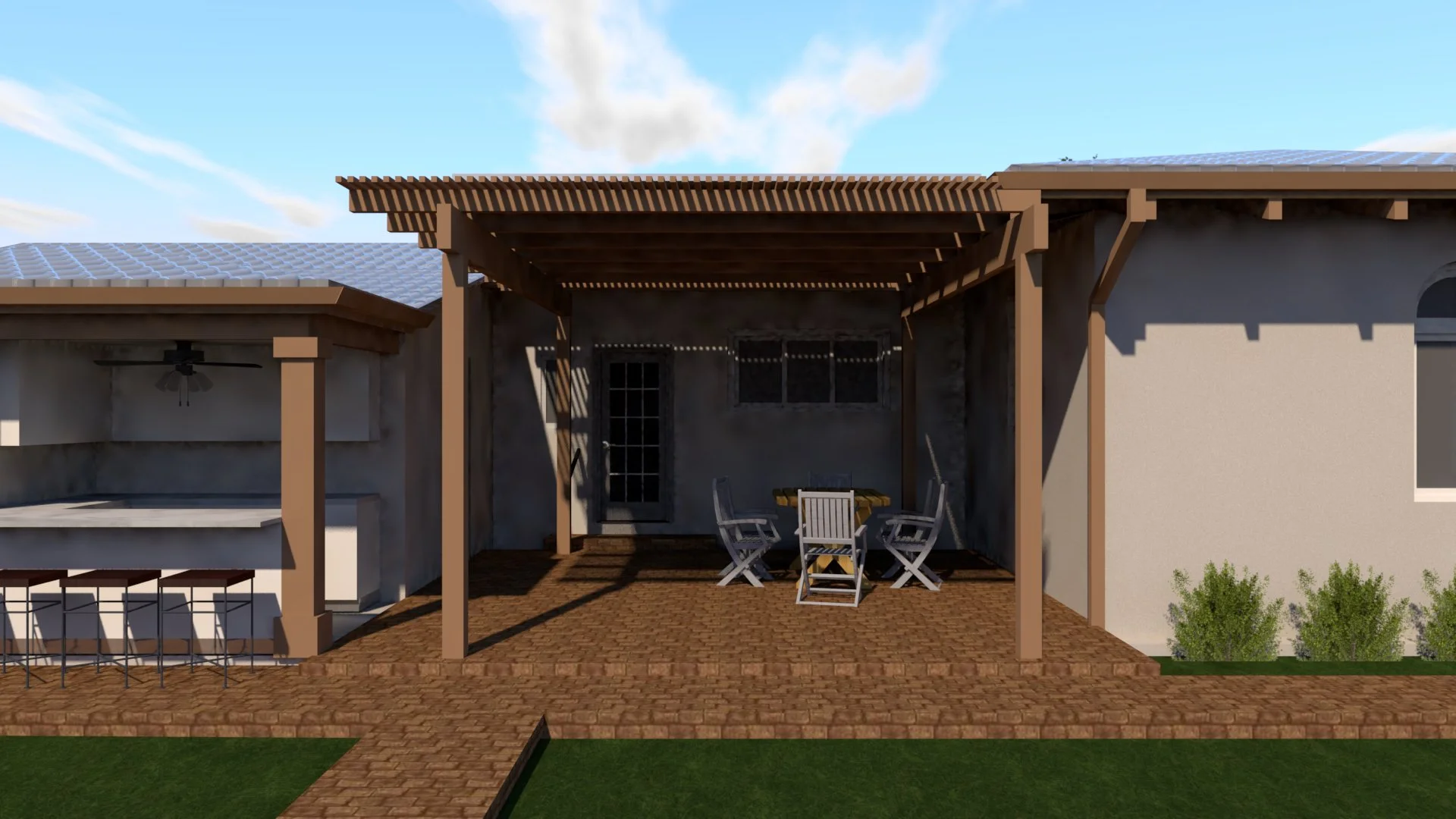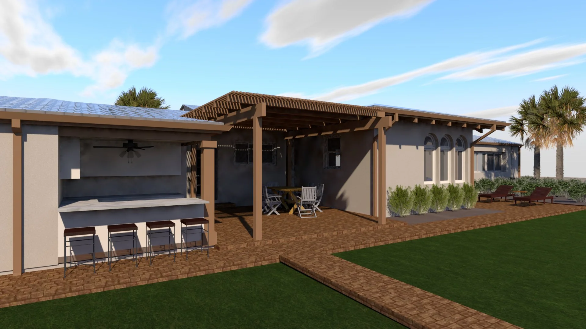 Meanwhile, at the rear of the house, nestled amidst lush greenery, a charming dining area awaits below the pergola's dappled shade, providing a picturesque setting for intimate gatherings. Just a few steps down from the Family Room, a separate spacious patio beckons, offering ample room for outdoor relaxation and entertainment. Here, amid the tranquility of their backyard oasis, the Clients envision countless moments of laughter, shared meals, and cherished memories in the making. With careful consideration and a touch of creativity, their home will soon become a beacon of warmth and hospitality, inviting all to partake in its newfound allure.